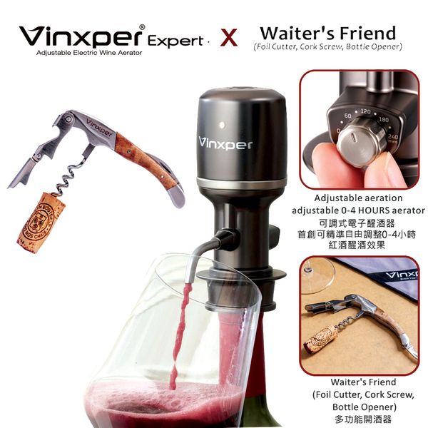 #酒瓶故事 會員●優惠# VINXPER 電子醒酒器+送 白影木刀(價值$348)【金屬灰色 |銀色| 收納盒】