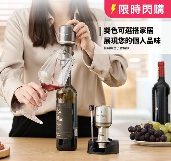 #酒瓶故事 會員●優惠# VINXPER 電子醒酒器+送 白影木刀(價值$348)【金屬灰色 |銀色| 收納盒】