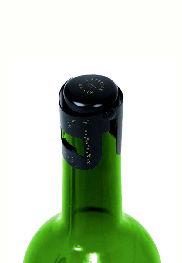 L'Atelier du Vin 這款適用於各類汽酒. 蓋上酒塞後,可達到隔絕瓶外空氣和維持瓶內氣壓的效果. 保持酒體的香氣和氣泡的完整性. 法國設計、金屬材質、標有著名百年品牌、造型優雅. 香檳•冰酒•氣泡酒最佳配置!